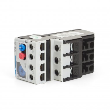 Предназначено для защиты двигателя от перегрузки и обрыва фазы. Тепловое реле выбирают по рабочему току двигателя и настраивают в соответствии с этим током перед первым запуском. Тепловые реле не защищают от токов короткого замыкания, поэтому использование автоматического выключателя или предохранителя остаётся обязательным.