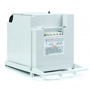 Моторный привод автоматического выключателя Chint серии NM8N габарита 800. Предназначен для дистанционного включения и выключения автоматического выключателя. Устанавливается вместо лицевой панели и воздействует непосредственно на рычаг управления автоматом. Представляет из себя мотор-редуктор со встроенными концевыми выключателями. Оснащён съёмной рукояткой ручного управления и кнопкой тестирования. Дистанционное управление приводом осуществляется путём кратковременного замыкания контактов клемм, соответствующих положению «включено» или «отключено».
