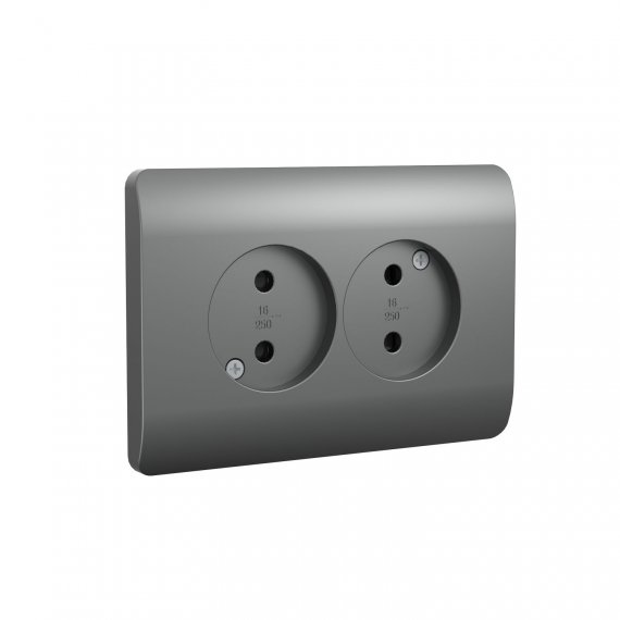 (NEW3-E) Розетка б/з со шторками двойная, 16А, серебряный