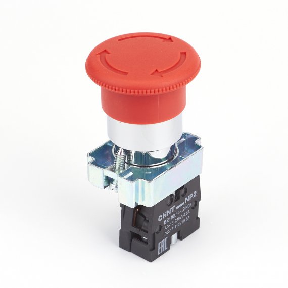 CHINT 573894 Кнопка управления "Грибок" ?40мм фиксацией NP2-BS542 без подсветки красная 1НЗ, IP40 (R)