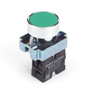 CHINT 573956 Кнопка управления NP2-BA31 без подсветки зеленая, 1НО, IP40 (R)