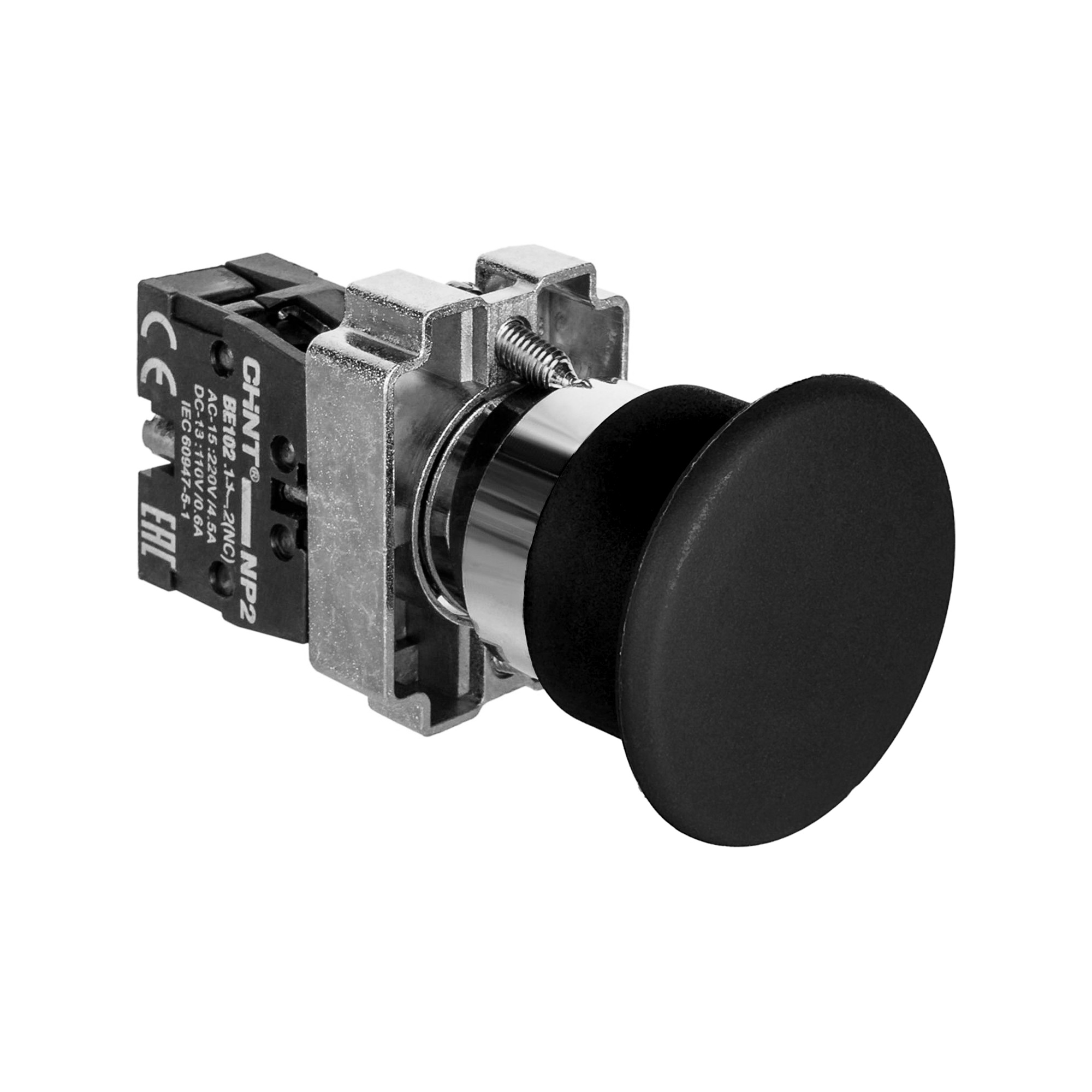 CHINT 573970 Кнопка управления "Грибок" ?40мм самовозв. NP2-BC22 без подсветки черная 1НЗ, IP40 (R)