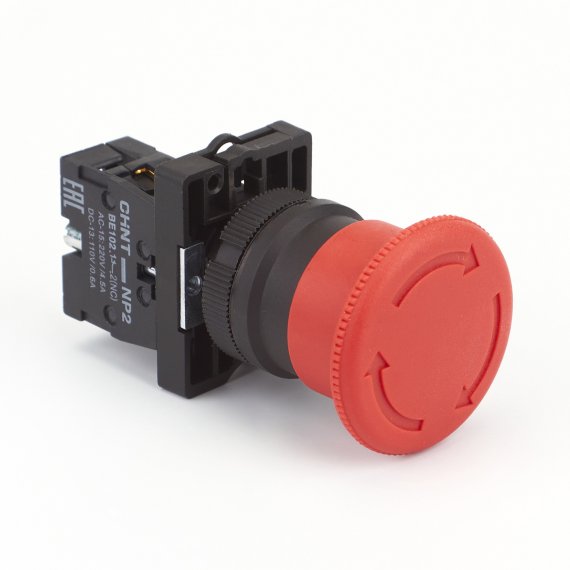 CHINT 574120 Кнопка управления "Грибок" ?40мм фиксацией NP2-ES542 без подсветки красная 1НЗ, IP40 (R)