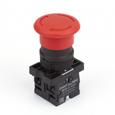 CHINT 574121 Кнопка управления "Грибок" ?40мм фиксацией NP2-ES545 без подсветки красная 1НО+1НЗ, IP40 (R)