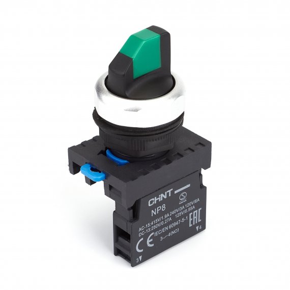 CHINT 667220 Переключатель без подсветки NP8-10X/213, 2 положения фиксацией, зеленый, 1НО, IP65 (R)