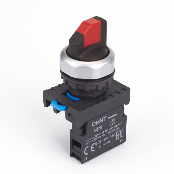 CHINT 667221 Переключатель без подсветки NP8-10X/214, 2 положения фиксацией, красный, 1НО, IP65 (R)